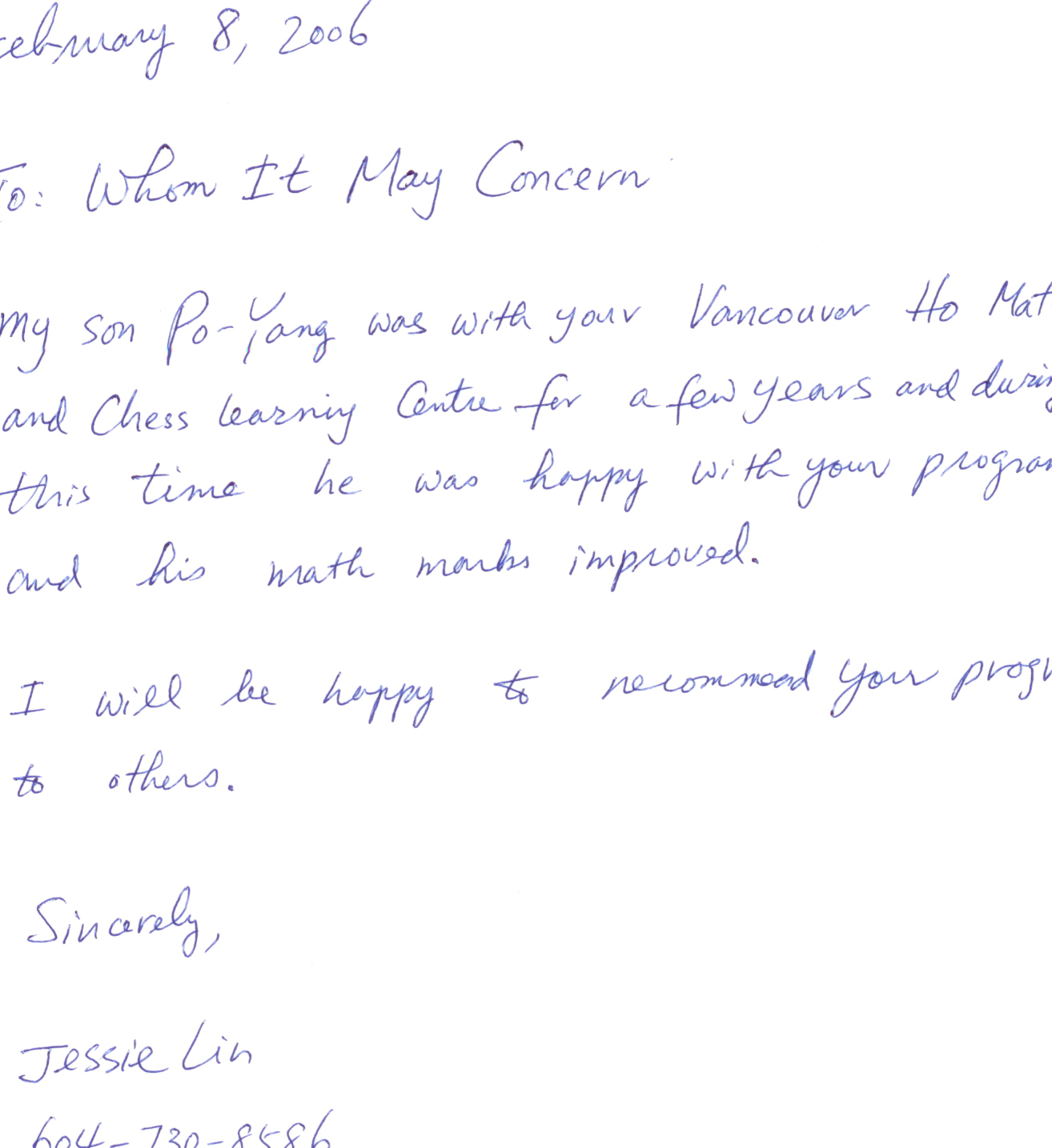 Hi! My name is Amanda and I run the Richmond Ho Math and Chess in Canada. Mr. Ho’s tireless efforts in helping franchisees and his efforts in promoting Ho Math and Chess hae impressed me a lot.
