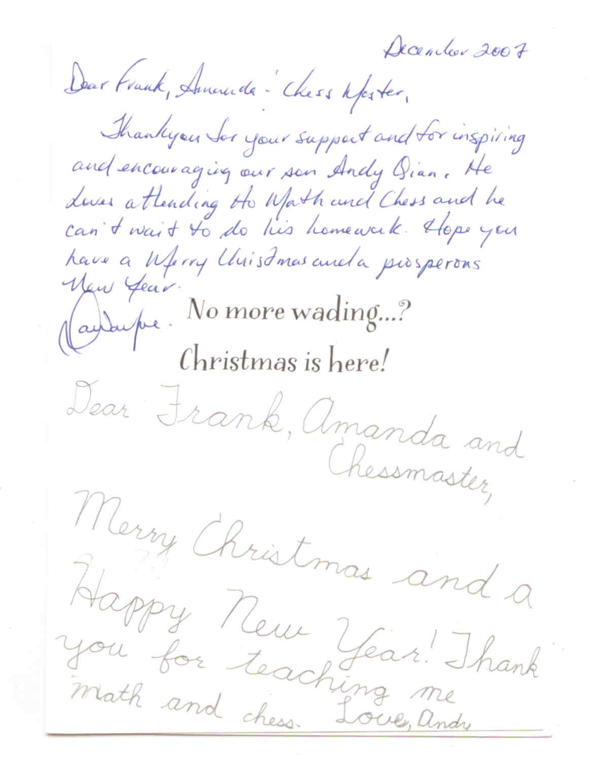 Ho Math and Chess is really goood. I like the workbooks. I look forward to coming to class each week. Thanks Frank!